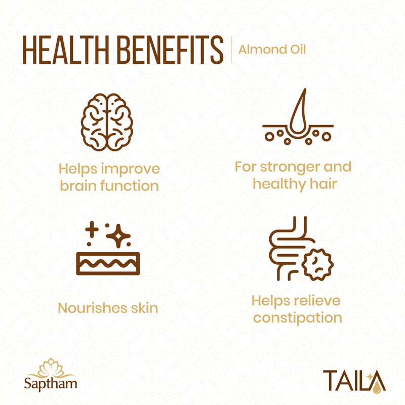 - Cold Pressed Almond Oil is rich in Vitamin E and Unsaturated Fatty Acids.
