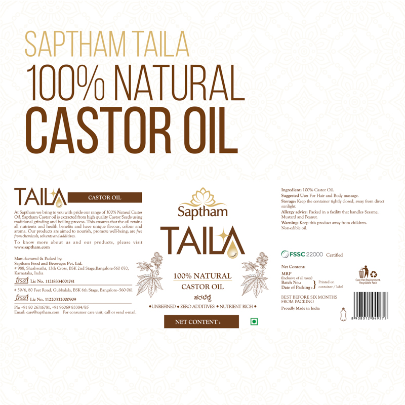 - Fusion of TRADITION, TECHNOLOGY and INNOVATION – TAILA is an exclusive edible and essential oil brand of Saptham Food and Beverages – world’s first wood pressed oil company to receive FSSC 22000 certification.