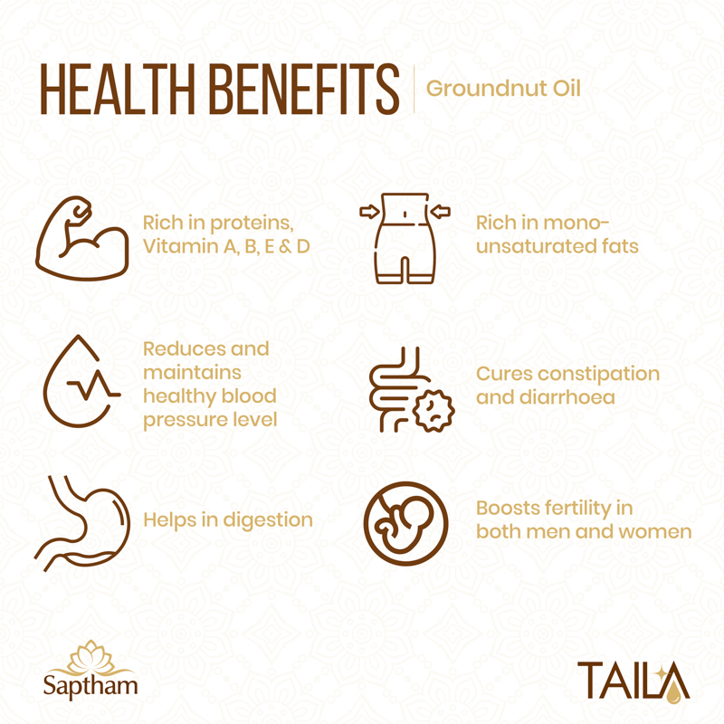 - Cold Pressed Groundnut Oil is rich in Vitamin A, E and D known for boosting immunity.