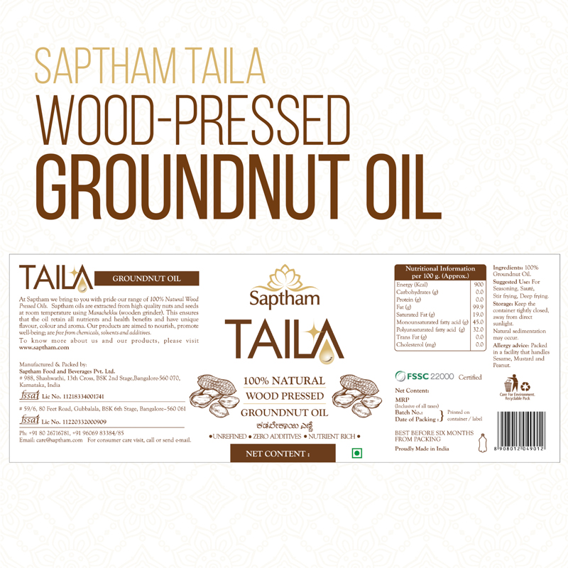 - Fusion of TRADITION, TECHNOLOGY and INNOVATION – TAILA is an exclusive edible and essential oil brand of Saptham Food and Beverages – world’s first wood pressed oil company to receive FSSC 22000 certification.