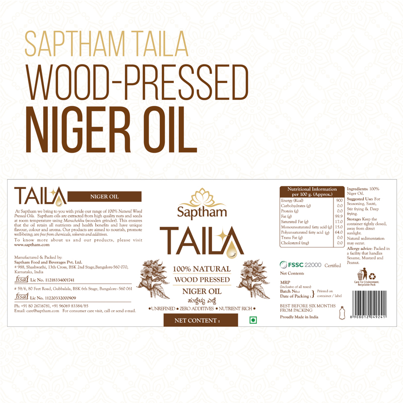 - Fusion of TRADITION, TECHNOLOGY and INNOVATION – TAILA is an exclusive edible and essential oil brand of Saptham Food and Beverages – world’s first wood pressed oil company to receive FSSC 22000 certification.