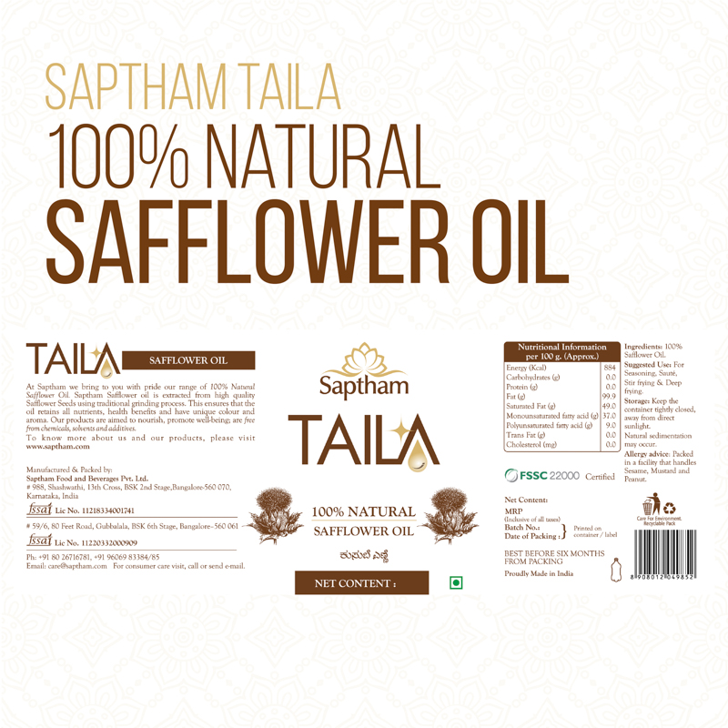 - Fusion of TRADITION, TECHNOLOGY and INNOVATION – TAILA is an exclusive edible and essential oil brand of Saptham Food and Beverages – world’s first wood pressed oil company to receive FSSC 22000 certification.
